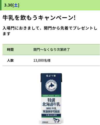 ⑧ミルク 「本日牛乳の配布あり」