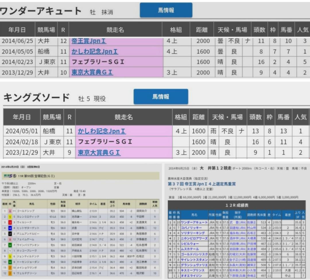【出馬表レース選択】で【全てのレースを表示】をクリック、そこでコンF使い特定のコトバの配置を(以下略