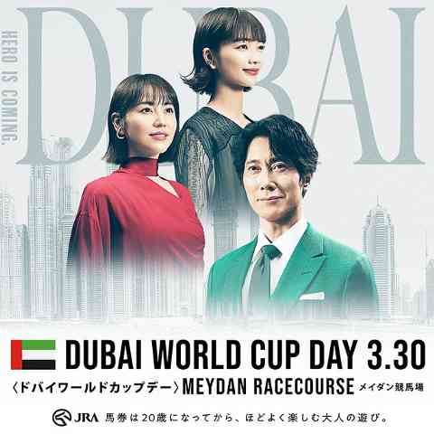 ドバイカップのポスター、見上愛(黒ドレス)の先のAIとGIポスターのステッキ先端(黒)のAIは何かを伝えてくれているように感じます。