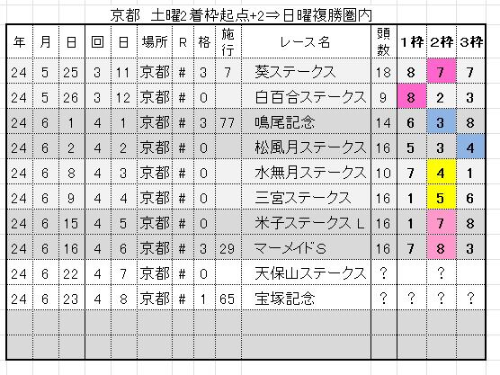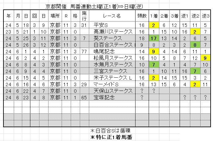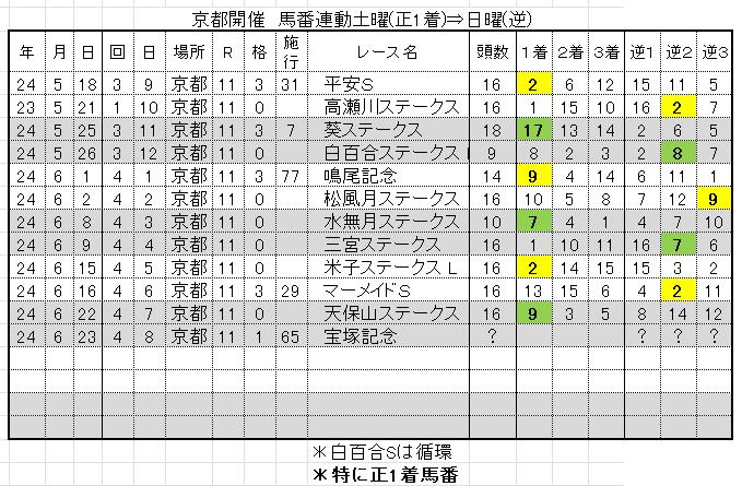 土曜(正1着馬場)⇒日曜(逆)複勝圏内