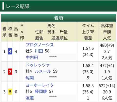金鯱賞の結果から3枠、4枠、5枠が連動すると予想したいところですが、もう一つ気になる「しりとり」を確認したい。