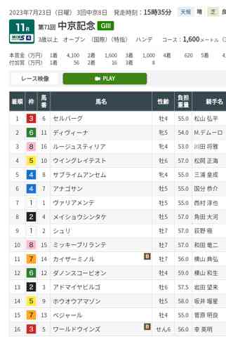 その最後のレースが「中京記念」でしたがそこで2着だったのが【ディヴィーナ】でした。ちなみに6枠【11番】お母さんは「ヴィルシーナ」でこの馬は「HERO馬」でもあります