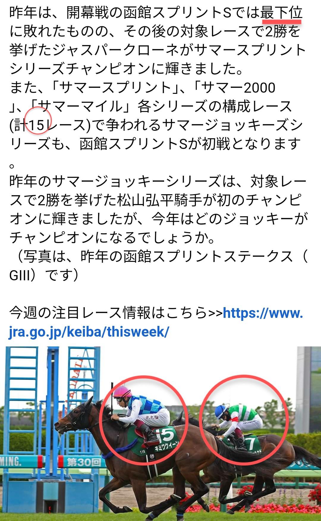 アレの方は長い、「夏の北海道シリーズ開幕!最初の重賞は函館スプリントS(GⅢ)」なんですが、
