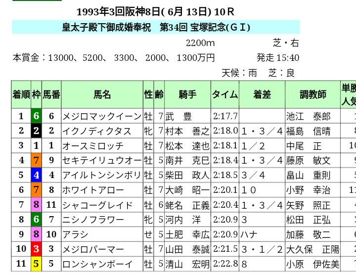 皇太子殿下御成婚奉祝は「宝塚記念」もありますね。個人的にはコッチの方がサインっポイ結果だったと記憶してます。