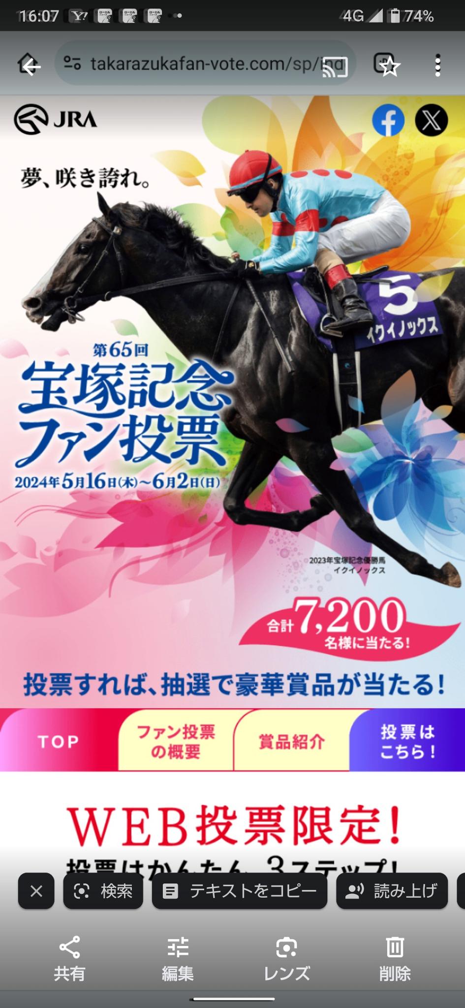 たとえば、このCMならCM公開の次週(または次開催)、馬券になる人馬の氏名を並べ、