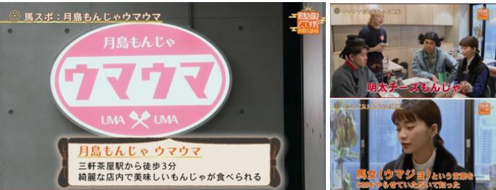 後半部分からは月島もんじゃ「ウマウマ」において「明太チーズもんじゃ」、「聖徳太子」、「ウマジョ」などなど…