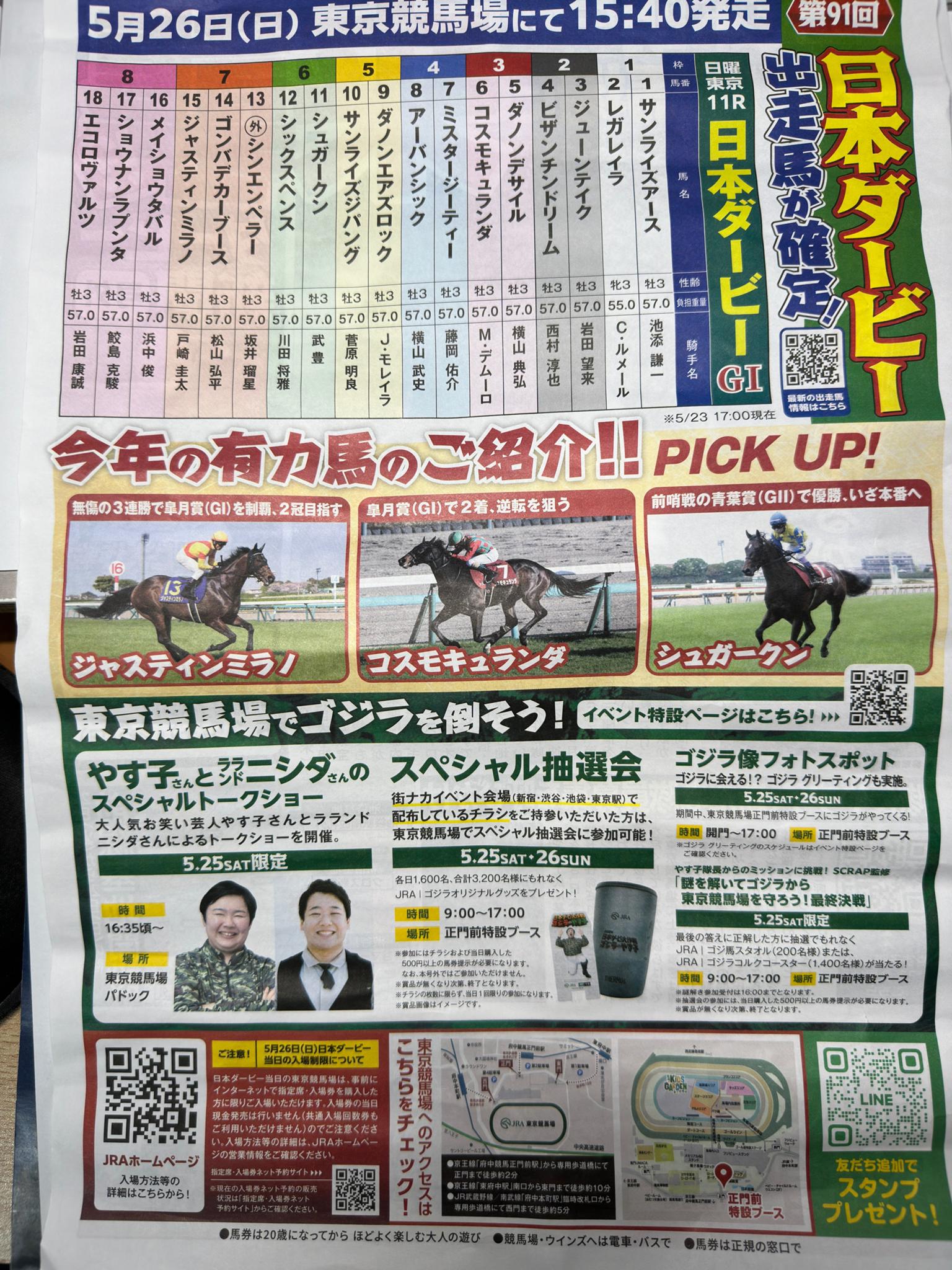 さて裏読み。「目黒記念」に戸崎、武JKがいません。他のレースとは違い「ダービー」後は表彰準備で忙しいのではないか?