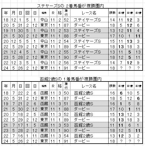 あとは、でてないのが2-4のみ。ただ、ダービーは天皇賞春とカブの関係になるのは、間違いない。