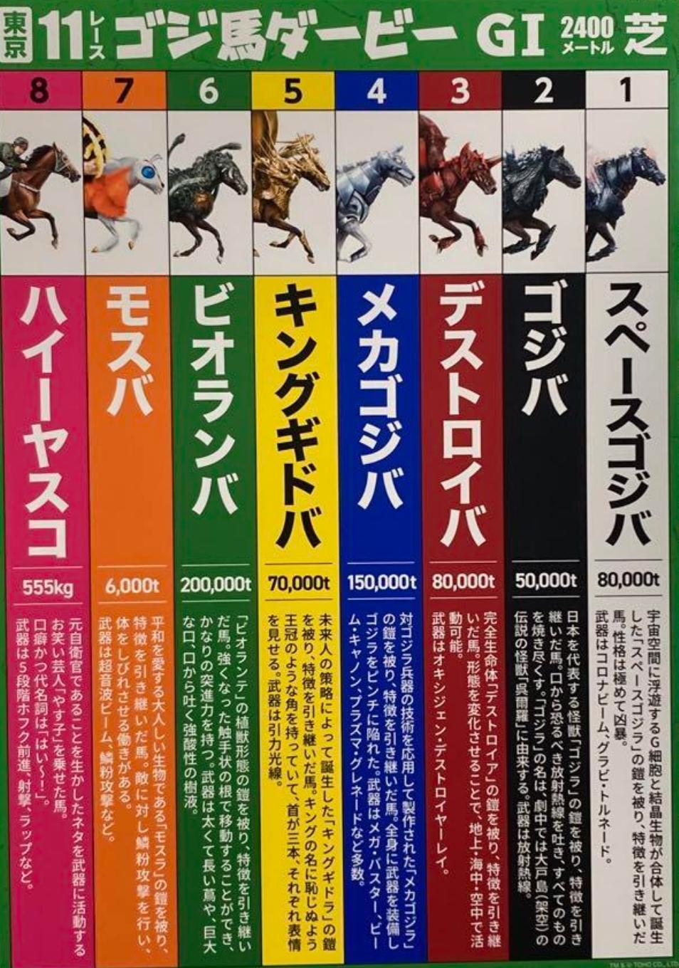または、ゴジラとやす子も併せて、赤緑でイタリア人? いや勝負服で岡田コスモ? おっとキャロットもか。