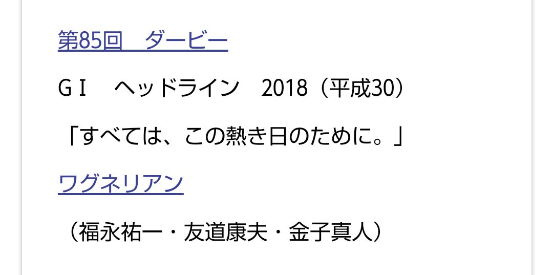 2018年ダービーのGIヘッドラインと同じ文章だからです。