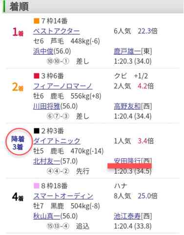 安田隆行(栗東)55戦3勝2着6回3着3回
