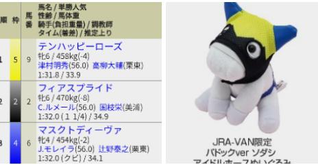 なかやまきんに君と写るJRA VAN限定のソダシのヌイグルミ