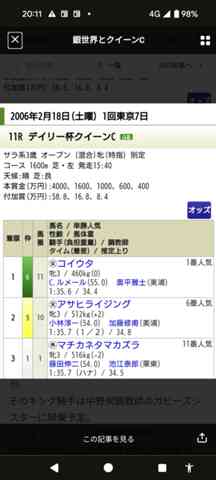 2006年に6枠⑪番(騎手ルメール)で出走し見事一着になっていますね。