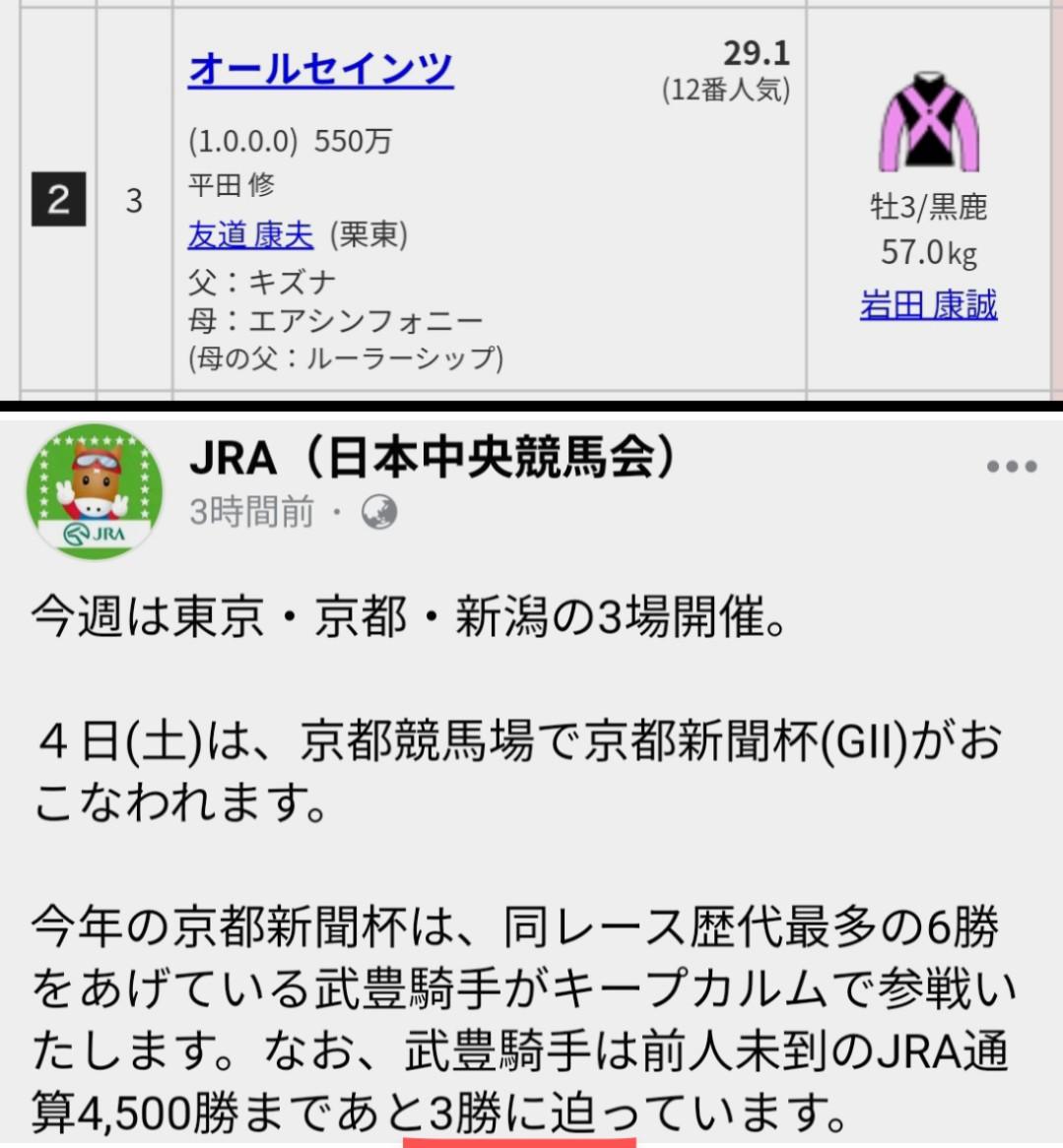 京都新聞杯は武豊騎手の話。注目したのは、『最多の6勝』『あと3勝に迫る』のフレーズ。