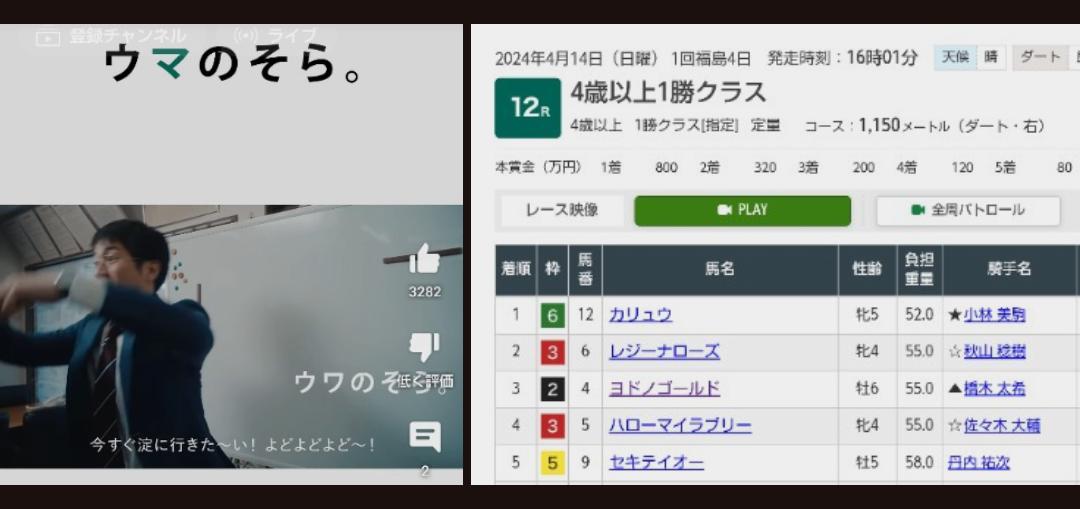 パソコンのロック回復、(アップデート出来ました!)からのカワキタレブリーへの演出は、僕にとってのハマったレースでした。