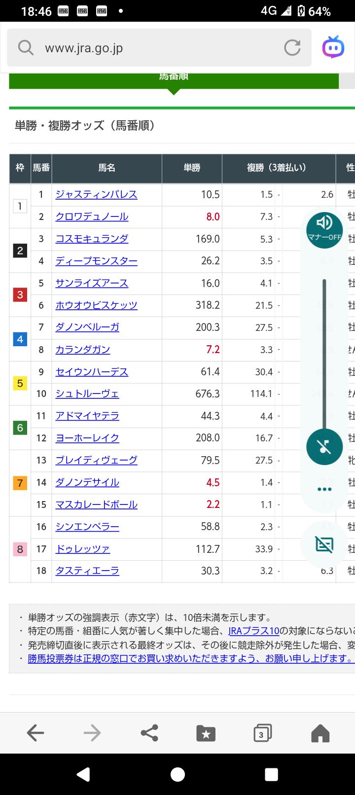 こんばんは、GI ヘッドラインも枠順も発表ですが18頭立て、有力馬が外枠順に1枠には凱旋門賞帰りの馬も入りました、青枠に世界一の外国馬、意外と難解な枠順ですね。