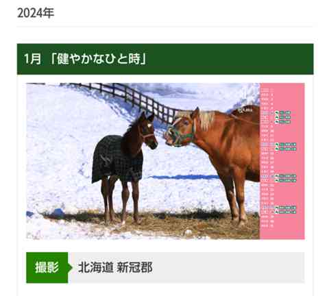 ※壁紙カレンダー、新冠牧場