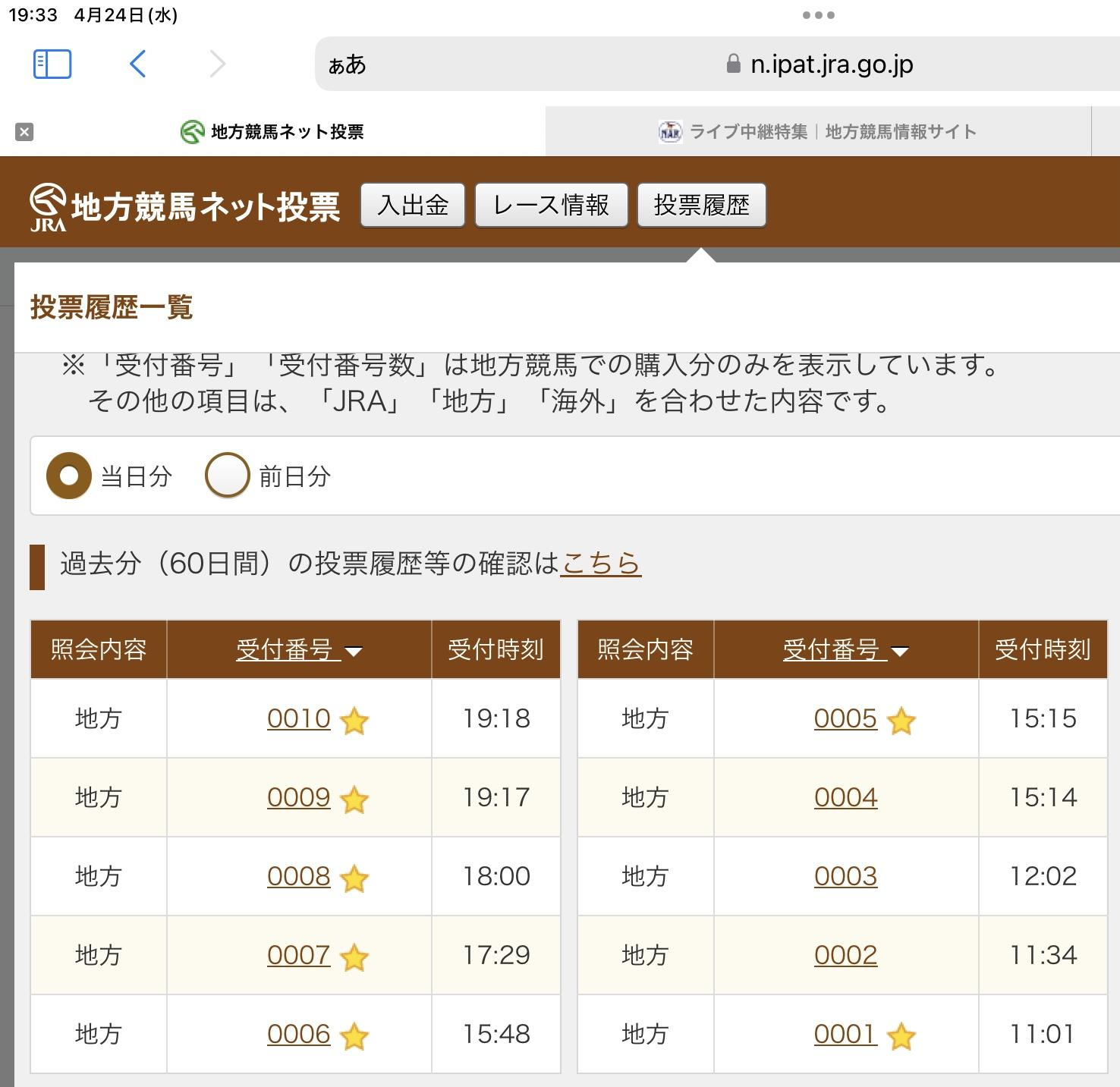 本日は地方競馬を楽しんでいます。今日は絶好調でオリサバシバシ来てます!