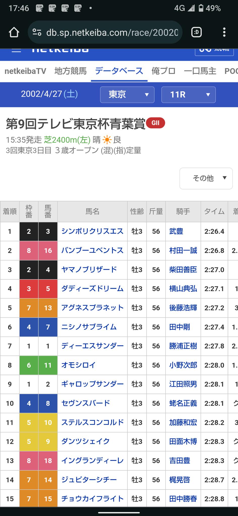 青葉賞を勝っています!