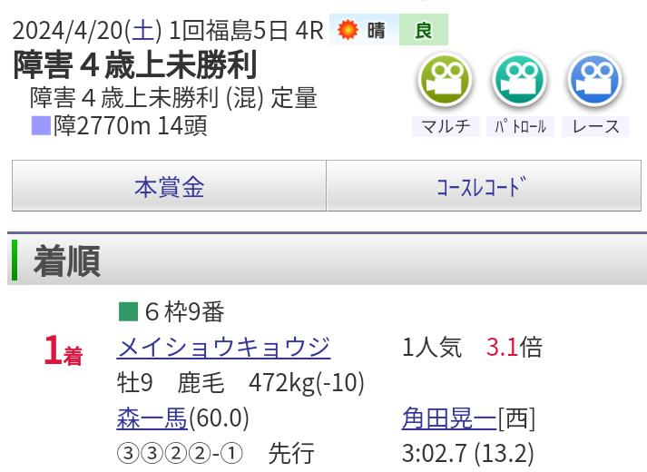 「メイショウキョウジ」が勝ちました。