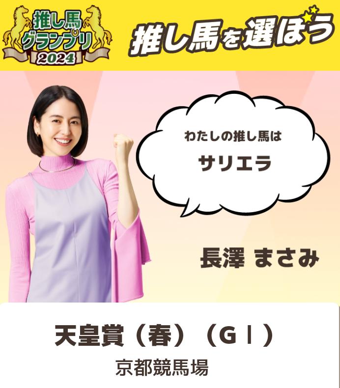 戦士の皆様お疲れ様です…南関東重賞に参加しましたが?残念ですがダメでした😞切り替えて天皇賞(春)についてカキコします…(ウマのそら)キタサンブラック·そして連覇の天皇賞の話し·CMはライスシャワーこちらは春盾優勝(初)·この2つの共通点1番人気·2番人気·4番人気·決着…そしてプレゼンター長澤ますみさん、8回目?(もっと多いような)として考えられる事は?今回で2回?ディープインパクト産駒かなぁ?サリエラ·前走ダイヤモンド·2着ですね?今の所はサリエラ·シルヴァーソニック·タスティエーラ·テーオロイヤル·ドゥレッツア·マテンロウレオ·メイショウブレゲ·ワープスピードをピックアップしてますねー明日はヘッドライトの公開日と枠順(午後からかなぁ?)…例題)最強が気になります!長い論文失礼しました、板主様申し訳ありませんでした。