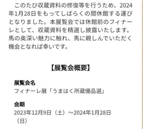 で、その「馬の博物館」がタイミング良く1月28日で休館するらしいです。