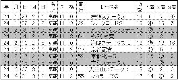 2023 3枠 5年継続 3着京都大賞典