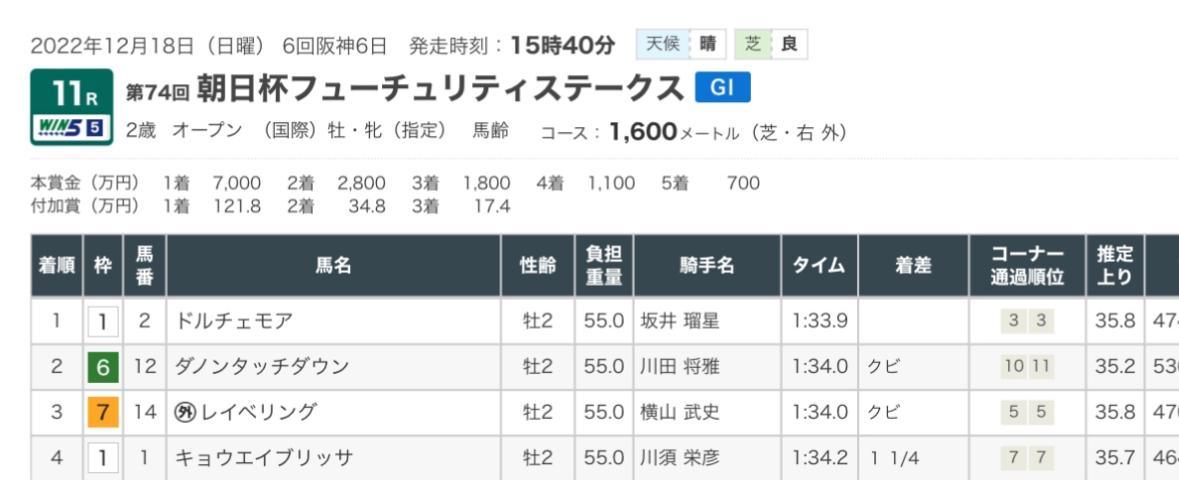 朝日杯FSの結果は画像でのせます。