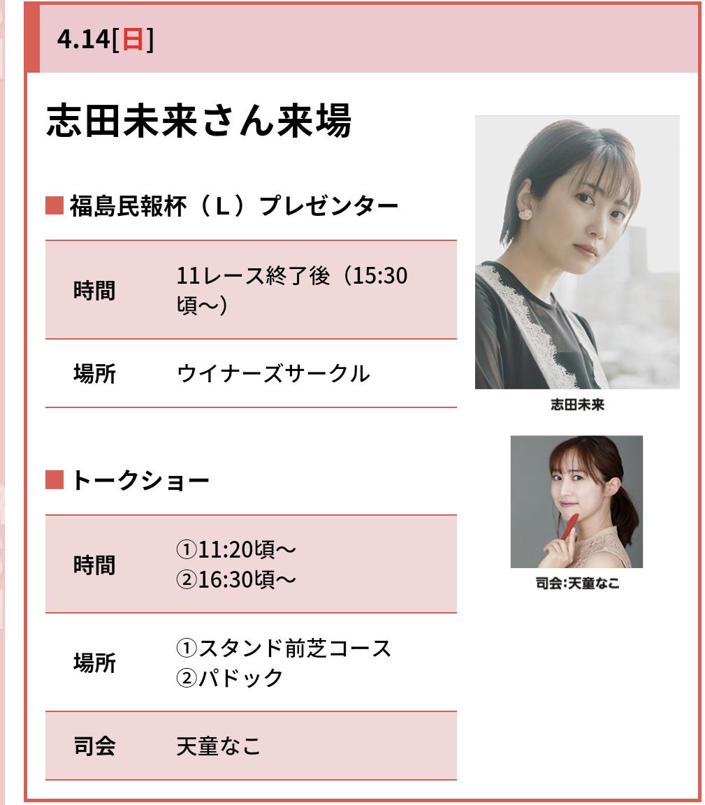 戦士の皆様、お疲れ様です…本日的中去れた方おめでとうございます!本日福島競馬場に志田未来さん』来場…未来→7枠の暗示?⑭サンストックンを狙います!3連単·④→⑭→⑦⑧⑫⑯3連複·同上·ワイド⑭→④⑦⑧⑫⑯で行きます!板場に失礼しました。