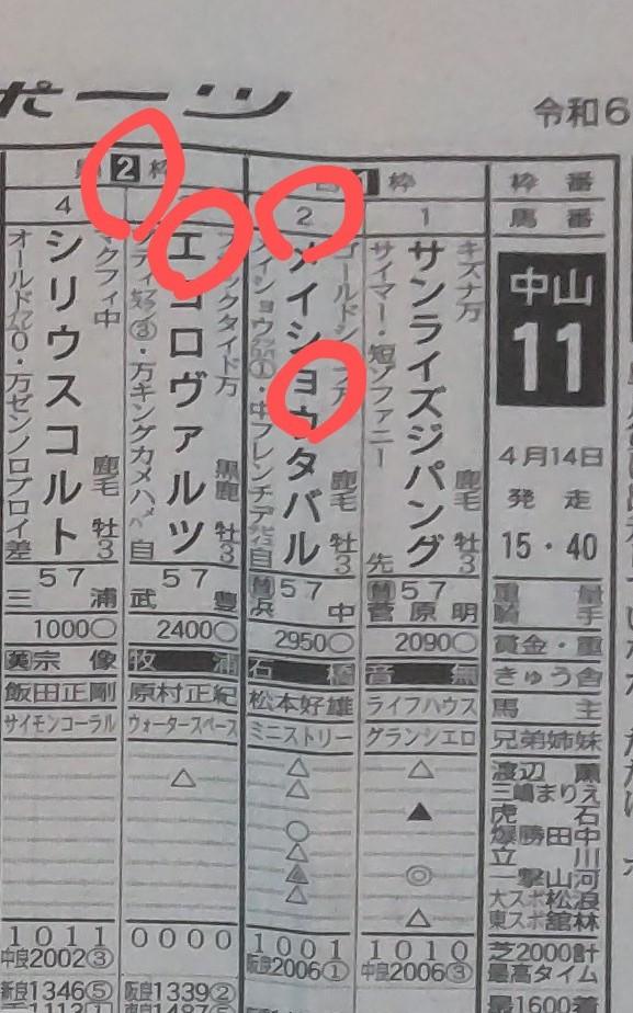 中山12Rメイショウ(ソラ)フネの5枠なら穴。昨日の阪神8Rアドマイヤ(ソラ)の6枠なら平穏か?