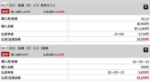 ちょっと複勝を買ってみました。