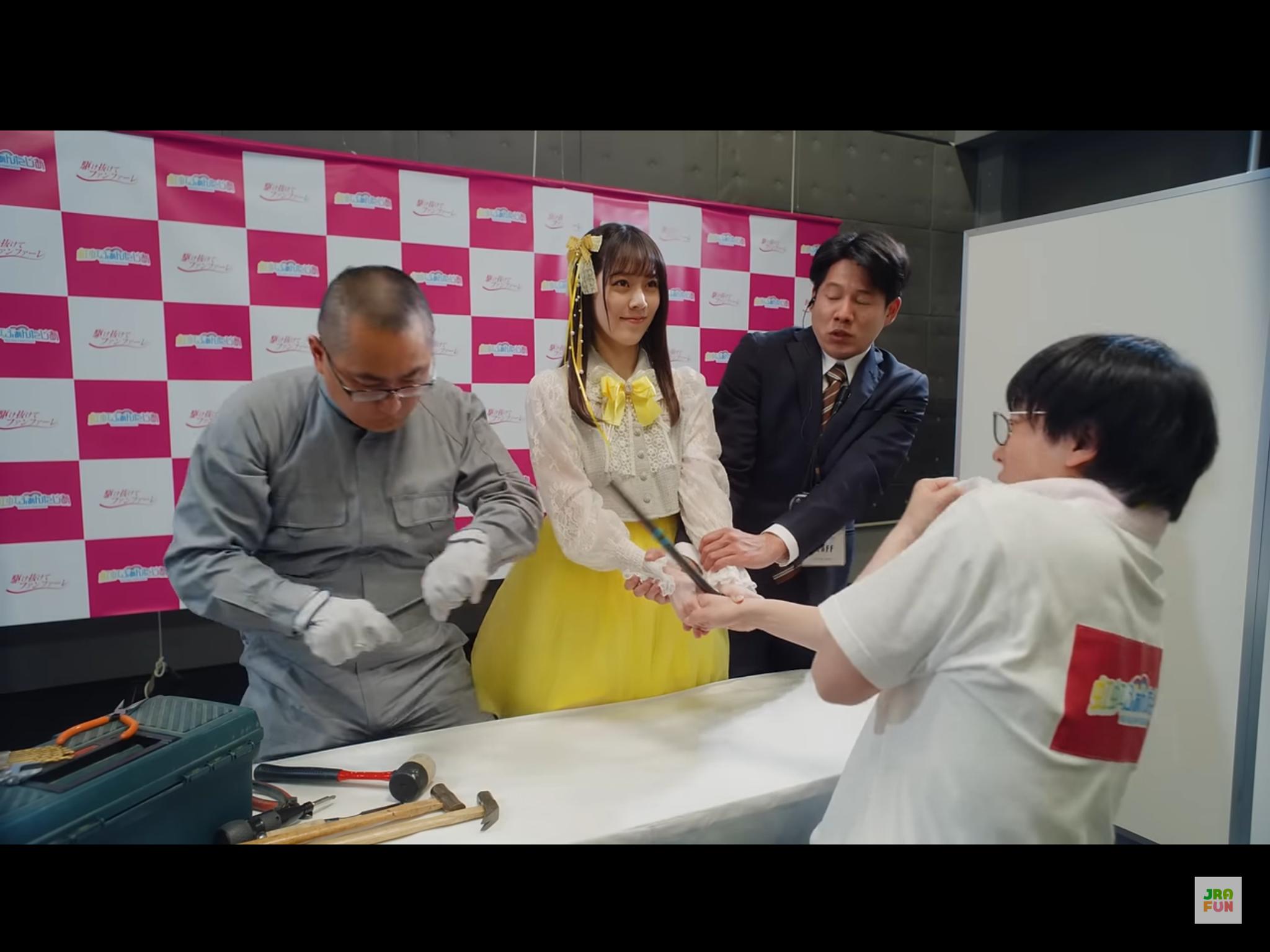 そのまま見ていくと最後に握手している力が強すぎて、鉄まで折ってしまう。。。