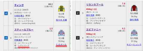 ココの8枠にもフェアリーの8枠にも田辺JK。ただマウンテンエースの佐々木JKがティンクってのがいやですね。