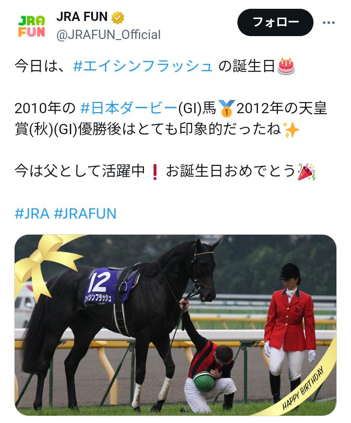 今週JRA FUNで出てきた「エイシンフラッシュ」の天皇賞