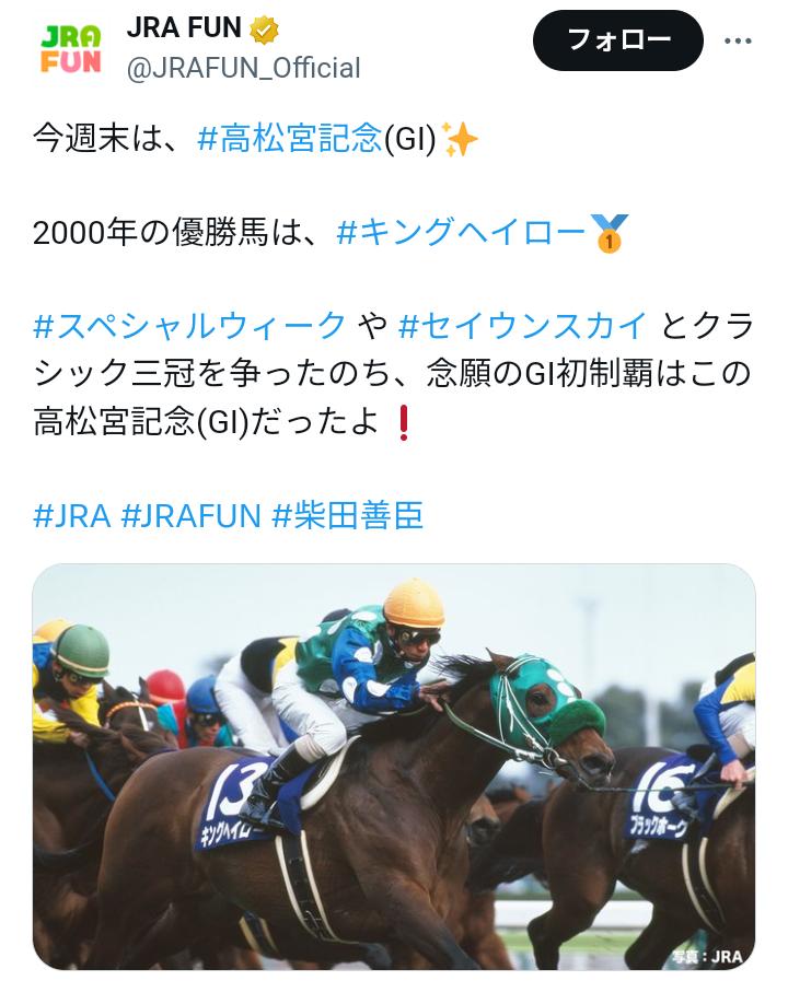 今週、JRA FUNにおいて「高松宮記念」の勝ち馬として何故か出てきた
