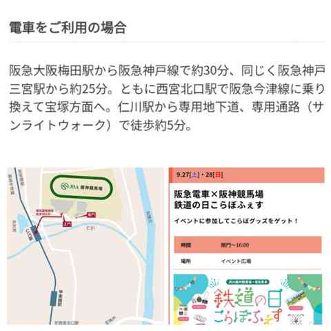 ならば電車で行くなら「西宮北口駅」で阪急今津線に乗り換えて宝塚方面へというJRAからのご案内