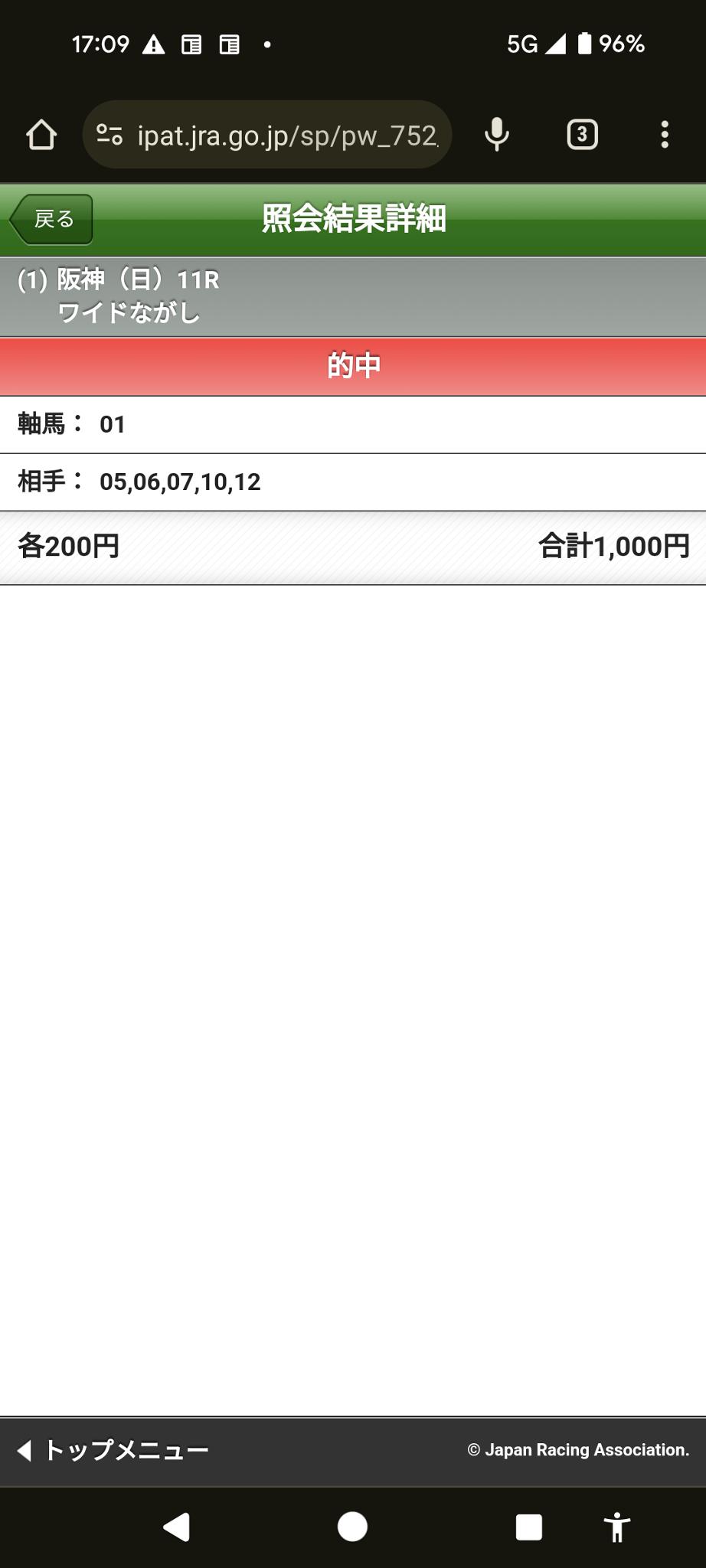 「アネモネS」のワイドは買っていませんでした。馬連だけでした。