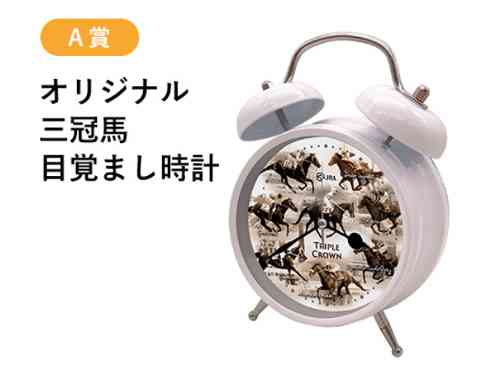 本日、枠色抽選会で「三冠馬目覚まし時計」のプレゼントが「125」名に当たるらしいです。