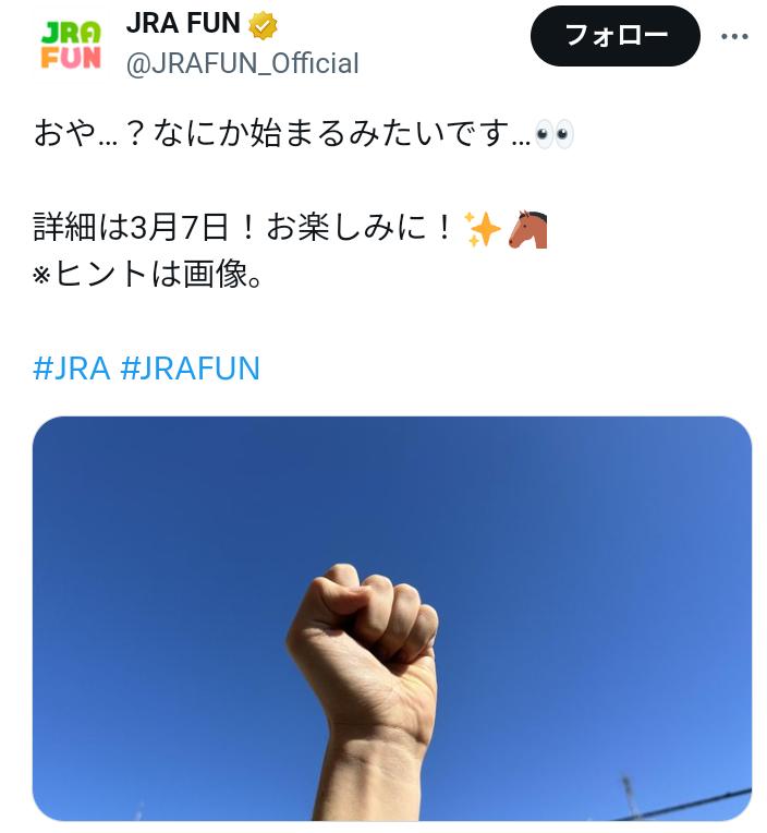 昨日からJRA FUNでナゾの画像が出てますが…なんでしょうね?
