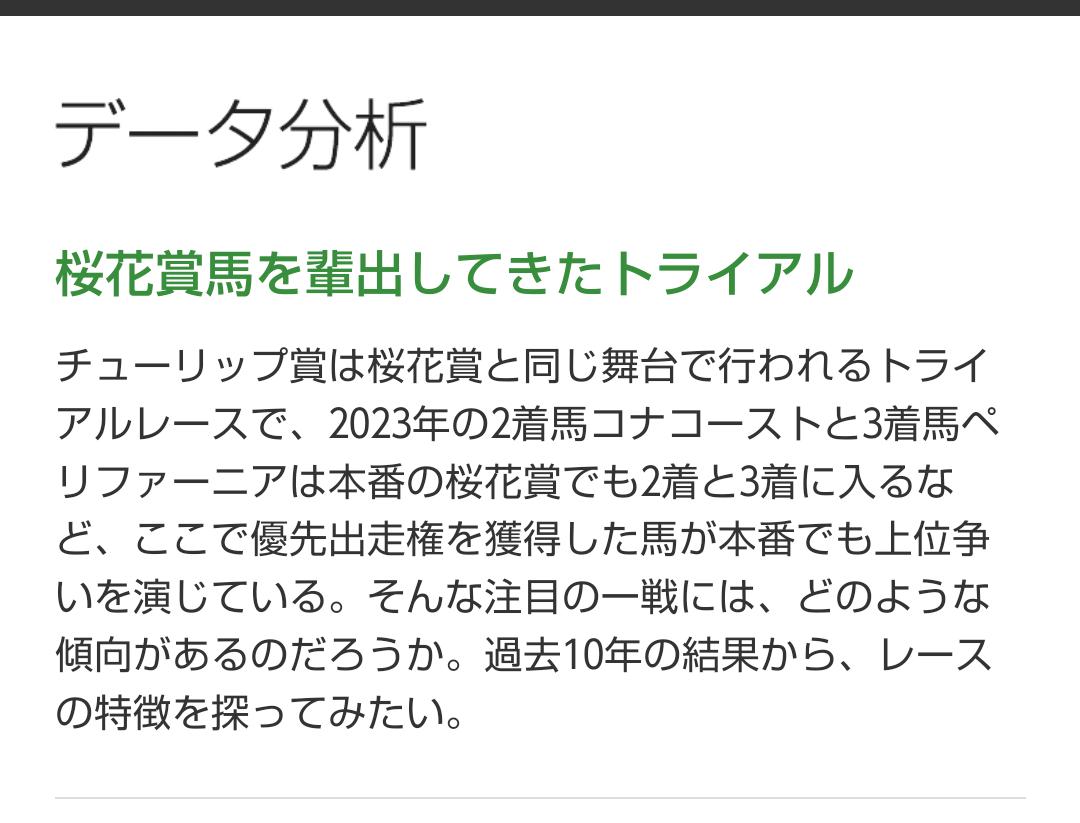 そもそも弥生賞は「皐月賞」の予想を混乱させるためのレースだと自分は思っていて、現に「弥生賞の勝ち馬が皐月賞を勝つよりもダービーを勝つ確率の方が高い」ですし、弥生賞と皐月賞を連勝する馬は余程の大物でないと無理ですね。