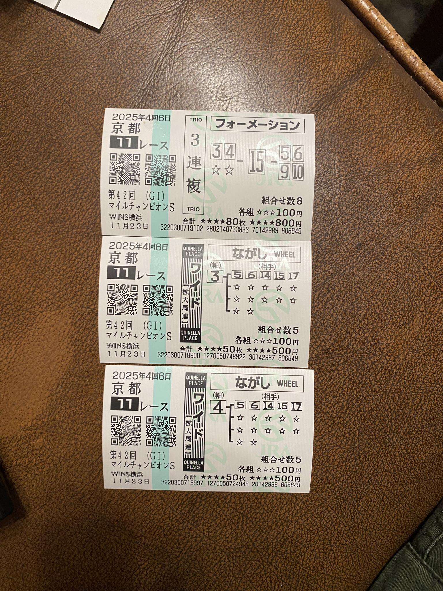ここに書いてる事と馬券が一致しないのは勘弁してください。流石に馬連はリスクがあるので見送りました。結果オーライです。