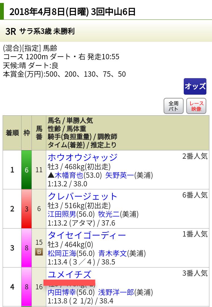 すると上に出走レース、下に出走・出馬投票履歴(4週分)が出て来ます。