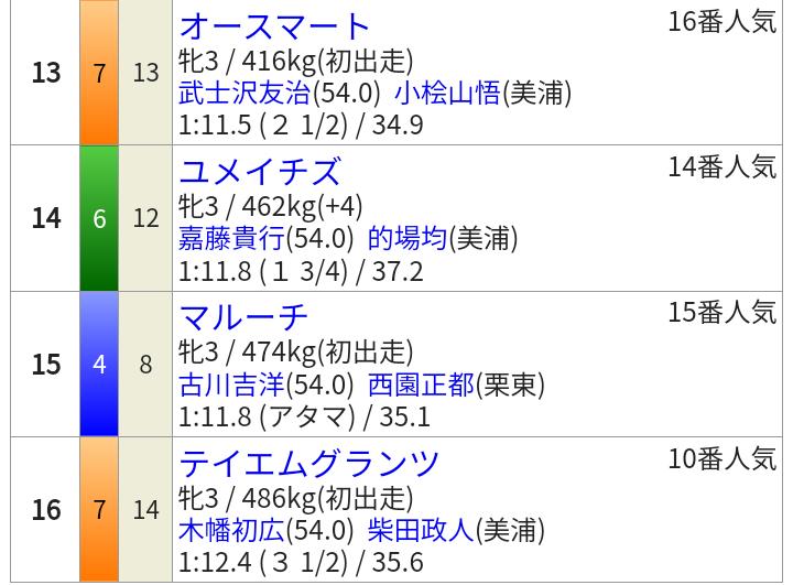 ニュージーランド、2着ウンブライル馬・騎手→8枠⑮ルメール