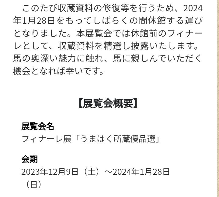 で、その「馬の博物館」がタイミング良く1月28日で休館するらしいです。
