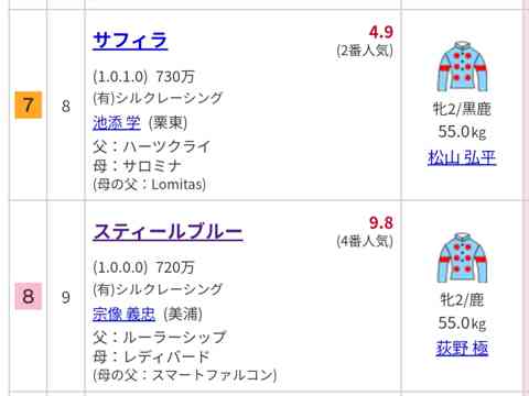 スワンSの出馬表を見て8枠の3頭の馬名に