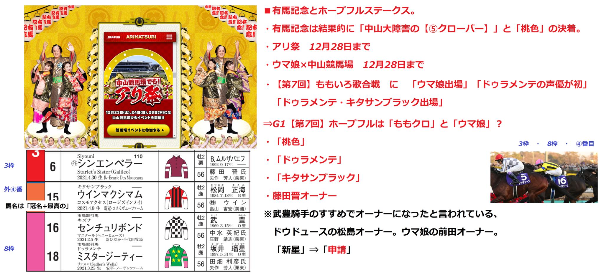 自分は2-1-全通りの(1-2-全なんですが、どうしても2番を上にしたくて)、馬連、ワイド1-2を買ってたので、今年のホープフルは終了です