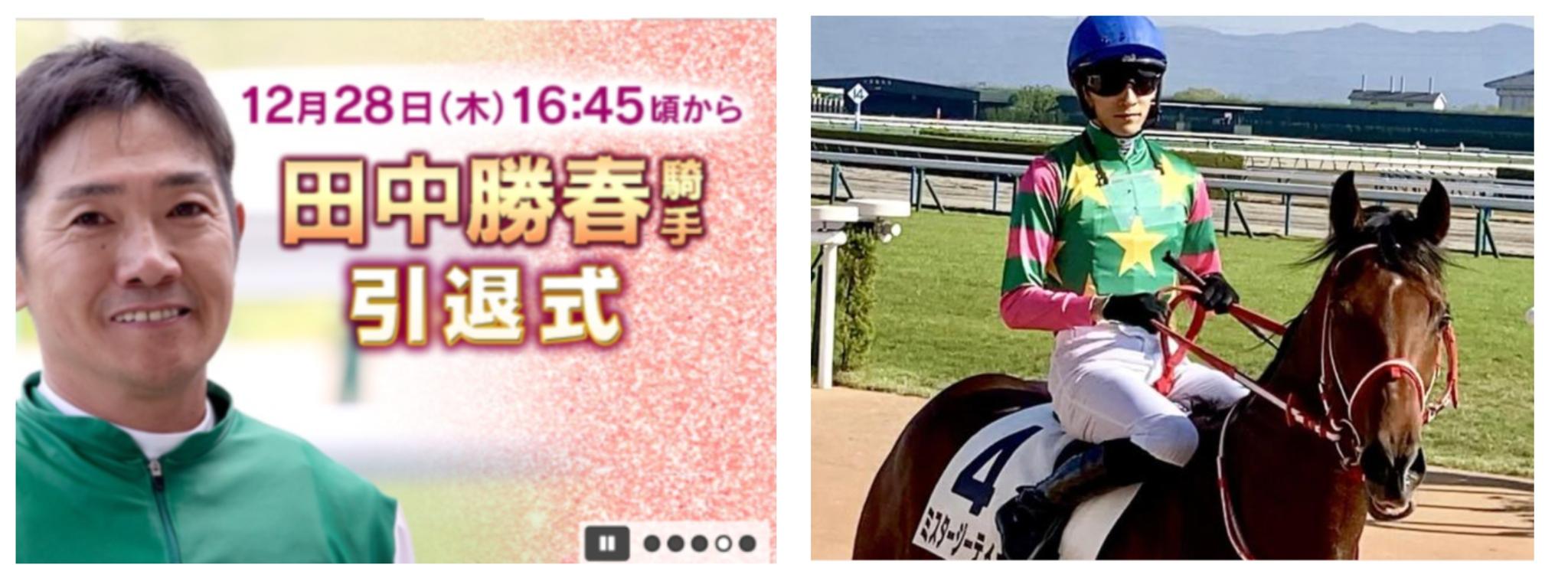 JRAホームページに田中勝春騎手の引退式の告知があり、色使いが緑、ピンク、黄…これってミスタージーティーの勝負服の色使いなんですね