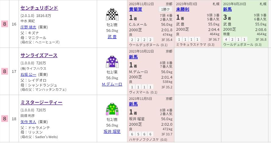 そして菜さんが乗り変わりなし、無敗馬を挙げておられました。枠順発表当初、⑰サンライズアースも合致してましたが、出走取消により、⑱ミスタージーティー1頭になりましたね(*^^*)