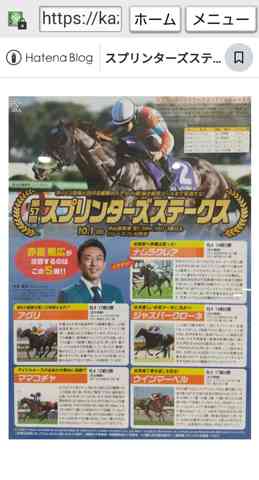 ヒネリましたね。「ベルグヤワタ」の新馬戦か、当日(新馬戦)の「スプリンターズS」かな?と思ってました。