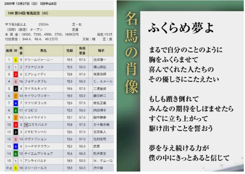 取り急ぎターコイズは2009年有馬記念「まんま」で様子を見てみます。